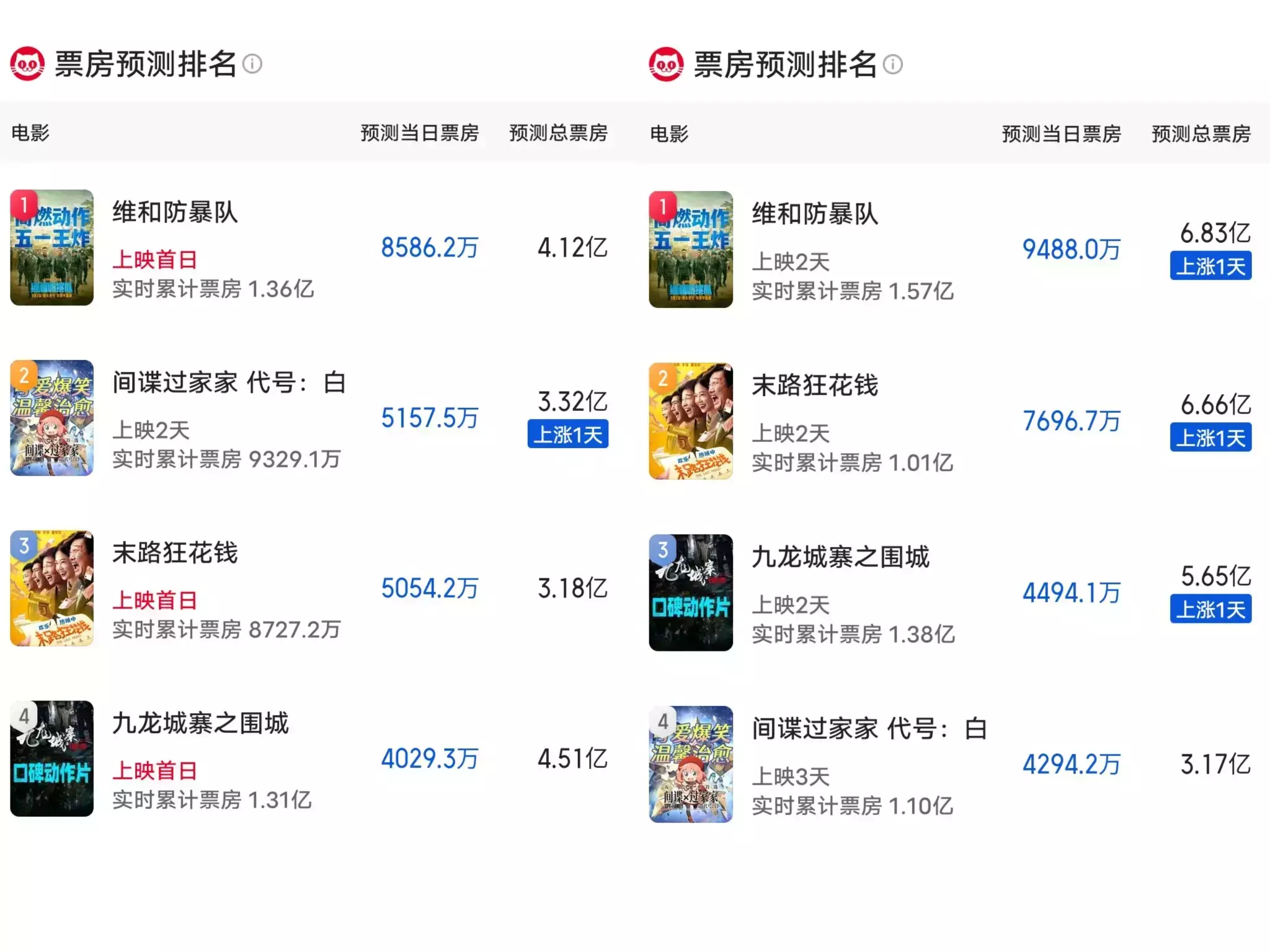 五一档第二天,猫眼展望《九龙城寨》的总票房名次径直被挤到了第三,太拉跨了!