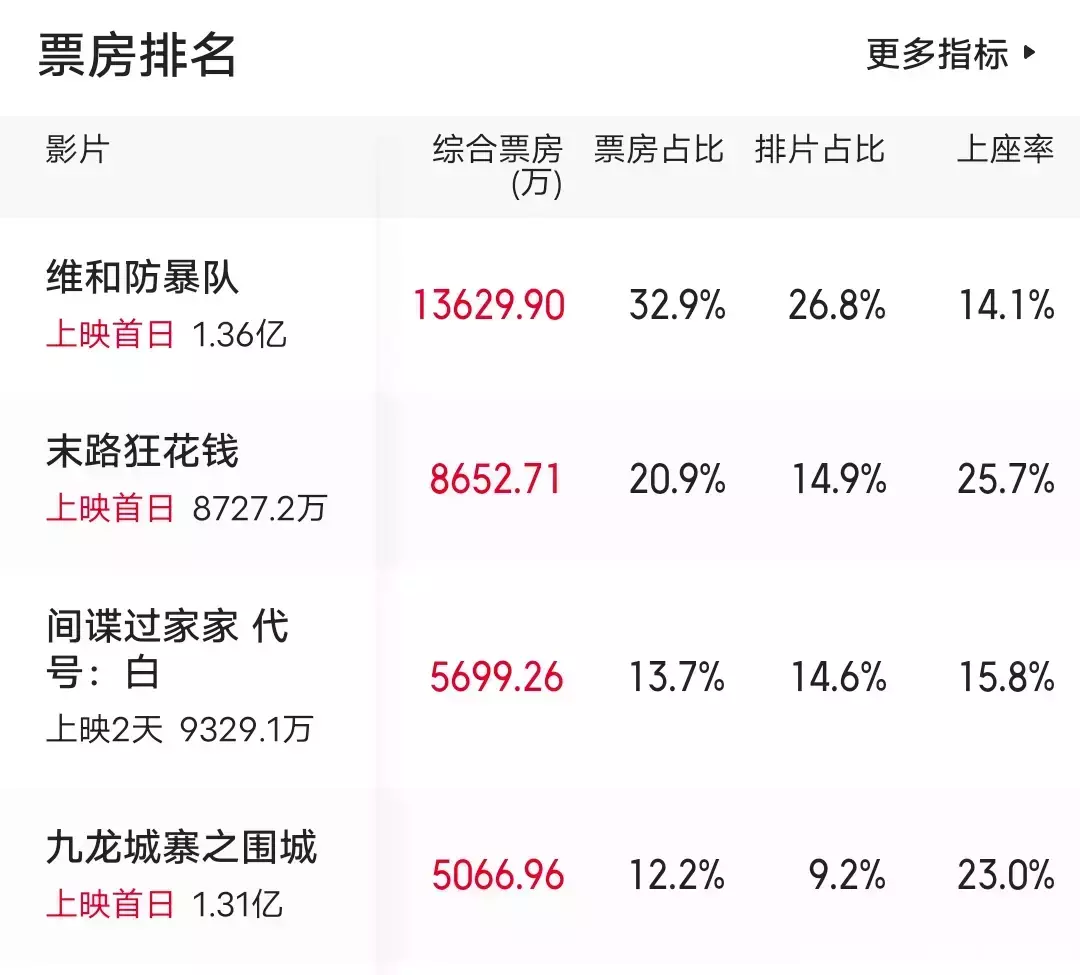 轨则上映首日就拉了!点映了五六天累计的票房被《维和防暴队》一天就给超了。